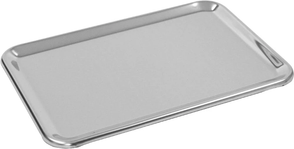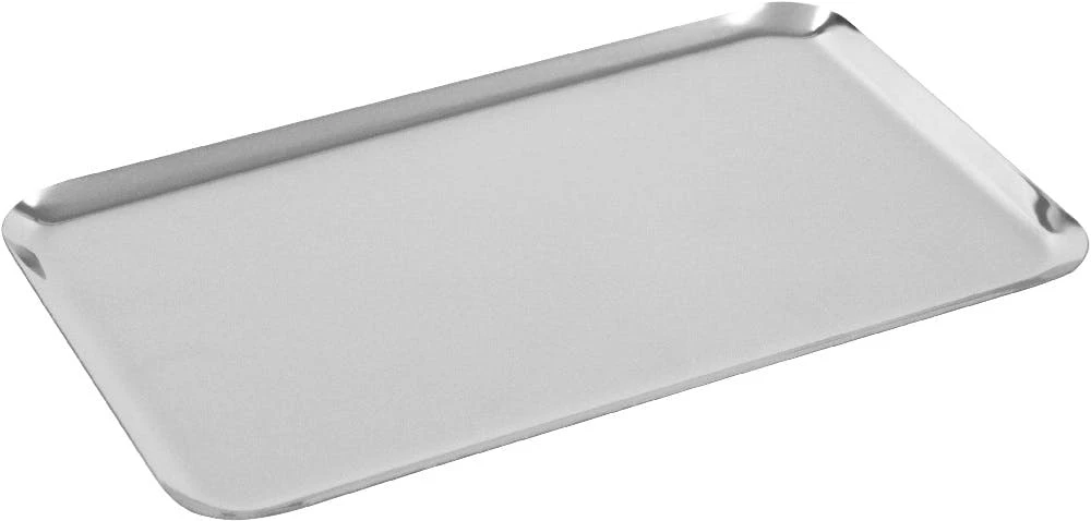 Hochglanzpolierte Serviertabletts in rechteckiger Form aus Edelstahl mit umgelegtem Rand. ++ Höhe: 12mm ++