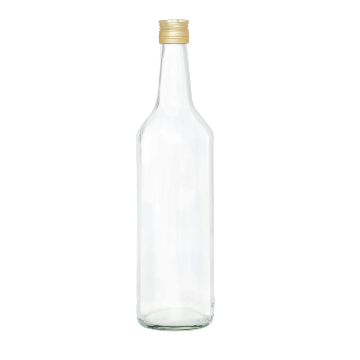 Die Flasche Venezia eignet sich hervorragend zur Kaltabfüllung verschiedener Produkte aus den Bereichen: Lebensmittel und Kosmetik. Vorzugsweise wird die 31.5 cm hohe Rundflasche zum Abfüllen von Wein, Würzmittel, Salat-Dressing, Öl, Honig, Saft und Schnaps genutzt. Hohe Transparenz und ein brillanter Oberflächenglanz sorgen dafür, dass Inhalte in der hygienischen Verpackung besonders gut aussehen!Verschenken Sie ein echtes Original, indem Sie den 2 cm hohen Flaschenkopf anschließend, mit einem handelsüblichen Kapselversiegler, veredeln. Alternativ kann die längliche Form auch als Flaschenpost oder zum Verschenken von Gutscheinen genutzt werden.Eine sinnvolle Investition für Getränke-Lieferanten, Restaurant-Betreiber, Apotheken und Herstellern von Kräutern und Kosmetika, denn die klare Flasche lässt sich umlaufend etikettieren. Eingearbeitete Kanten im Glas sorgen für die perfekte Werbe- und Etikettier-Fläche von max. (B x H) 26 x 16.5 cm.Die Glasflasche Venezia überzeugt durch hohe Festigkeit und fasst bis zu 1.000 ml. Das Material ist lebensmittelecht, wiederverwendbar, pflegeleicht und absolut umweltfreundlich, da Glas zu 100% recyclebar ist. Der goldene Deckel (ohne Rollrand) eignet sich perfekt zum Verkapseln und ist mit einer EPE-Dichteinlage versehen, die für Lebensmittel zugelassen ist und für sehr gute Dichtwerte sorgt!Die Rundflasche ist an der weitesten Stelle Ø 8 cm und oben Ø 3 cm weit. Der Boden misst Ø 6 cm. Die schraffierte Stellkante im Unterboden sorgt für Standfestigkeit. Einfüllöffnung Ø 2.2 cm. Materialstärke: 3-5 mm.Lieferumfang:12 Flaschen, 1.000 ml (1L), Ø 8 cm, H 31.5 cm, oben Ø 3 cm, Boden Ø 6 cm, 490 g12 goldene Deckel, Ø 3.2 cm, H 2.4 cm, 10 g