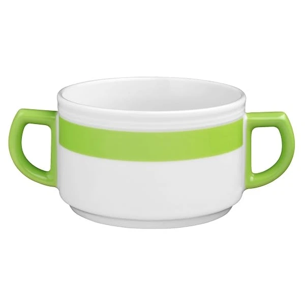6 x Seltmann Obere zur Suppentasse 0,35 l, Form: Vitalis, Dekor: 34927 grünes Band