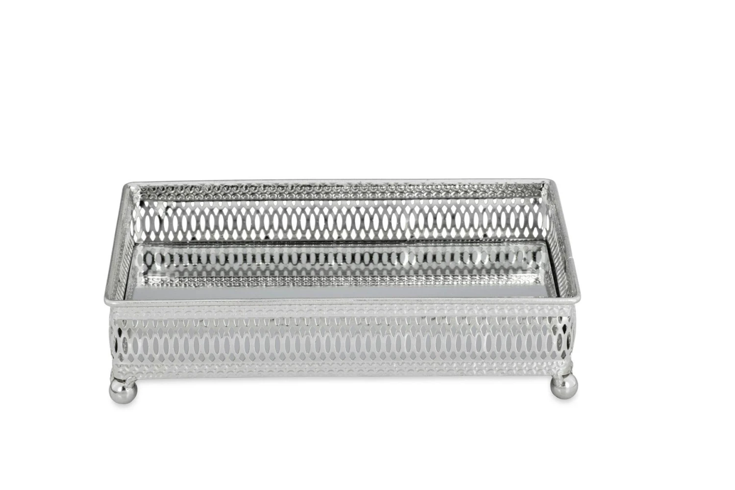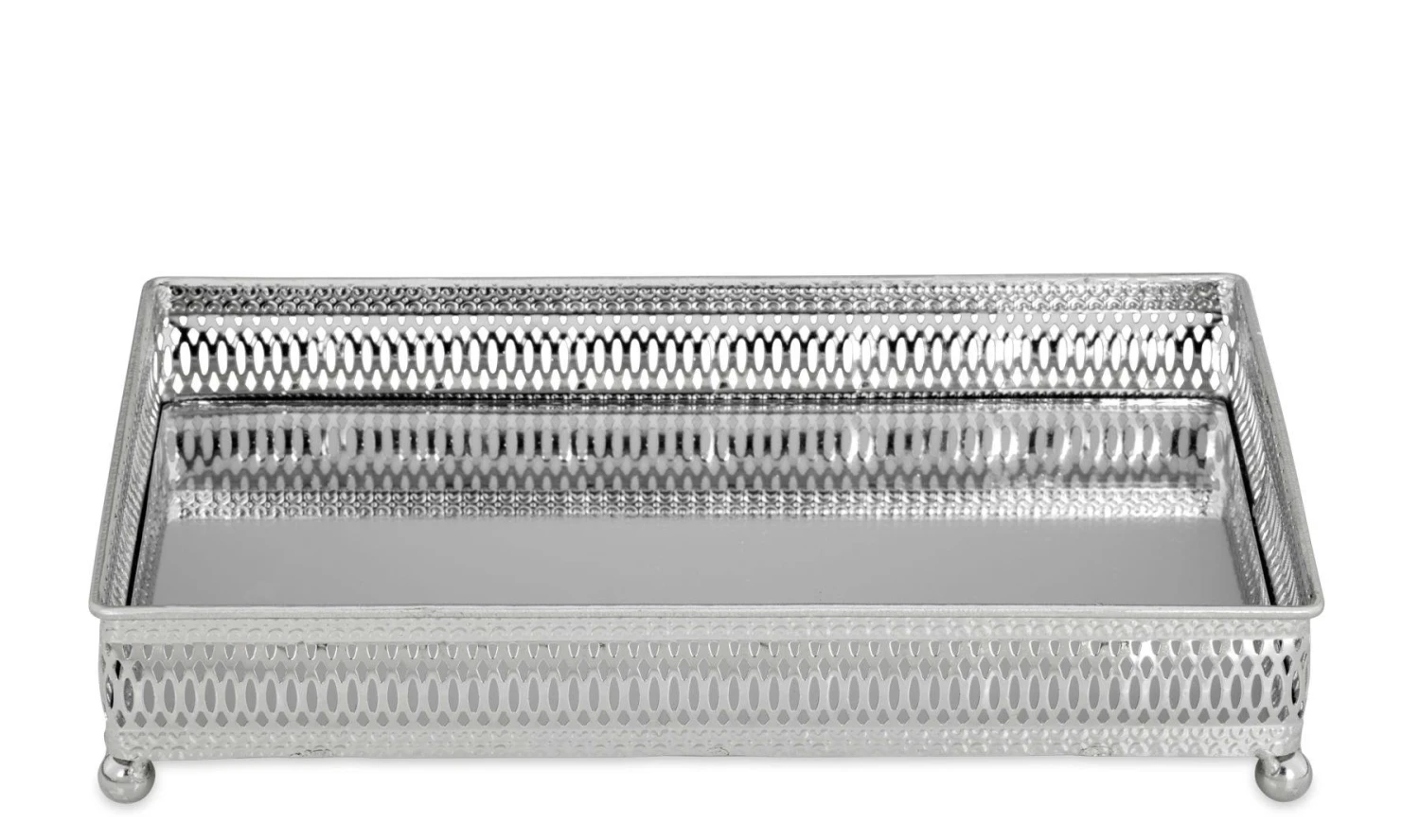 Galerie-Spiegeltablett Rechteckig, Groß, vernickelt, 30,5 x 20,0cm, H 4,0cm Gesamt-H 6,0cm