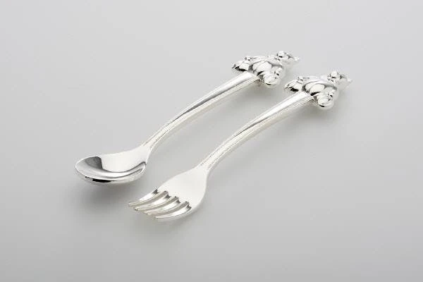 3- teiliges Käsebesteck im Maus-Design, aus versilbertem Material. Das Käsemesser ist 19,5 cm land, die Käsegabel ist 17,0 cm lang und der Käsebrecher ist 17,0 cm lang.