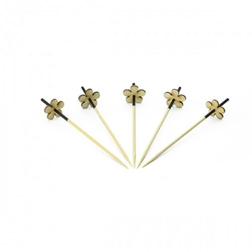 Eleganz und Anmut ziehen mit diesen Pickern in Ihren Fingerfood Bereich ein. Die Picker sind aus dem nachhaltigen und schnell nachwachsenden Rohstoff Bambus gefertigt. Die applizierte Blüte im Griffbereich sorgt nicht nur für ein optisches Highlight, sondern lässt sich auch ideal als Anfasshilfe verwenden!