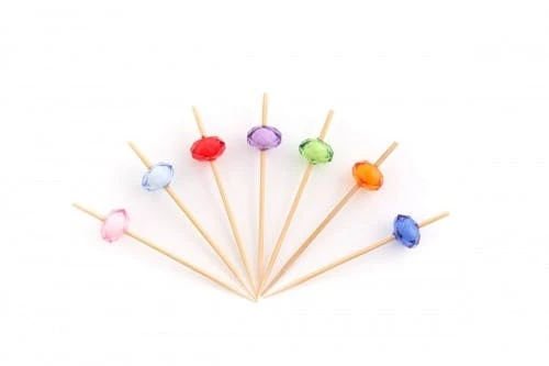 Es funkelt und blinkt auf Ihrem Buffet – mit den Pickern mit einer viereckigen Perle! Die bunten Steine im Griffbereich funkeln wie kleine Diamanten und sorgen garantiert bei Ihre Gästen für einen Wow-Effekt. Die Picker sind aus dem nachhaltigen und schnell nachwachsenden Rohstoff Bambus gefertigt. Durch die Steine lassen sich die Picker zudem sehr gut greifen!