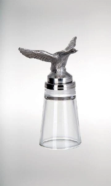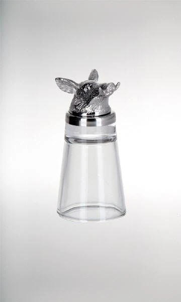 Schnapsglas im Steinbockmotiv aus Edelstahl. Das Schnapsglas steht umgedreht und ist so zu befüllen. Das Schnapsglas hat einen Durchmesser von 4,5 cm und eine Höhe von 11 cm.